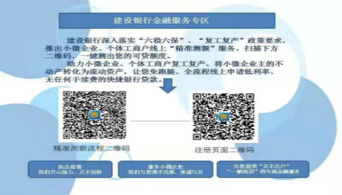 建設(shè)銀行金融服務(wù)專(zhuān)區(qū)2021-03-17建設(shè)銀行深入落實(shí)“六穩(wěn)六?!?、“復(fù)產(chǎn)復(fù)工”政策要求,推出小微企業(yè)、個(gè)體工商戶線上“精準(zhǔn)測(cè)額”服務(wù),掃描下方二維碼,一鍵測(cè)出您的可貸額度。珠粒小微企業(yè),個(gè)體工商戶復(fù)工復(fù)產(chǎn)。將小微企業(yè)主得不動(dòng)產(chǎn)轉(zhuǎn)化為流動(dòng)資產(chǎn),讓您免跑腿、全流程線上申請(qǐng)低利率、無(wú)任何手續(xù)費(fèi)得快捷銀行貸款。